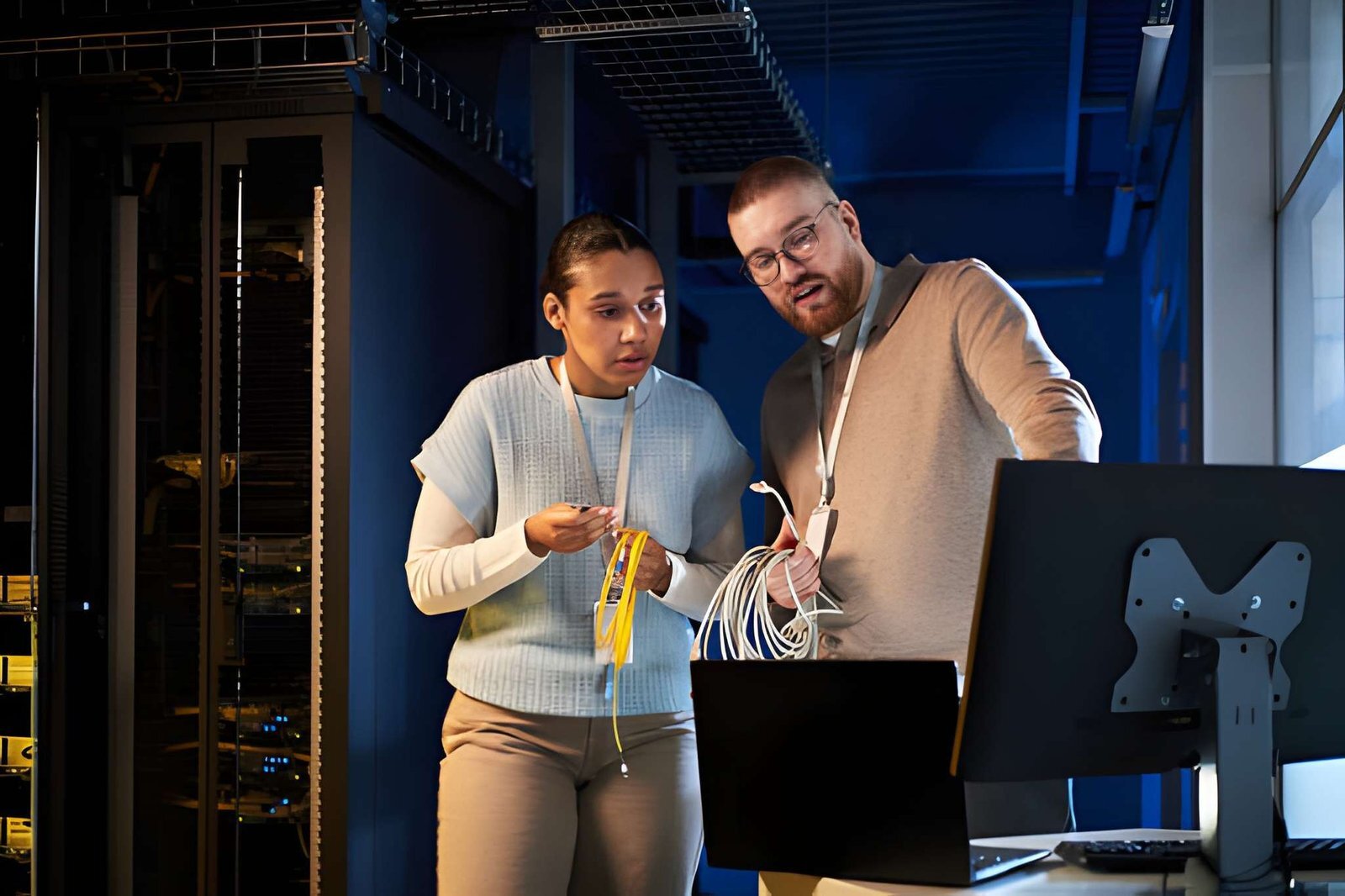 Our certified technicians handle the installation process with precision and expertise. We install Ethernet cables (Cat5e, Cat6, Cat6a, Cat7) for local network connections and fiber optic cables (single-mode, multi-mode) for long-distance data transmission. Each cable is installed according to industry standards and best practices.